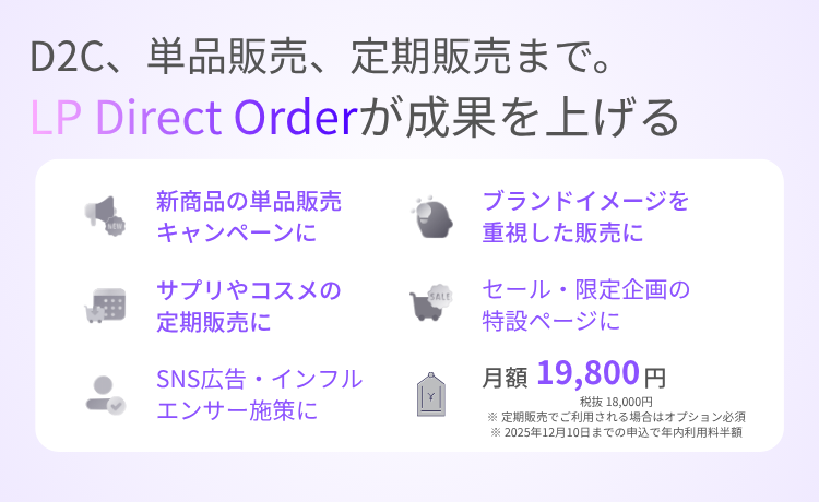 - お試しセットや限定商品などを、LP訪問後すぐに手軽に購入してもらいたいショップ様