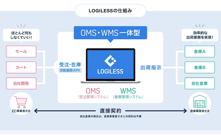 LOGILESSは、ECビジネスのオペレーション効率化に欠かせないOMS(受注管理システム)とWMS(倉庫管理システム)の一体型システムです。